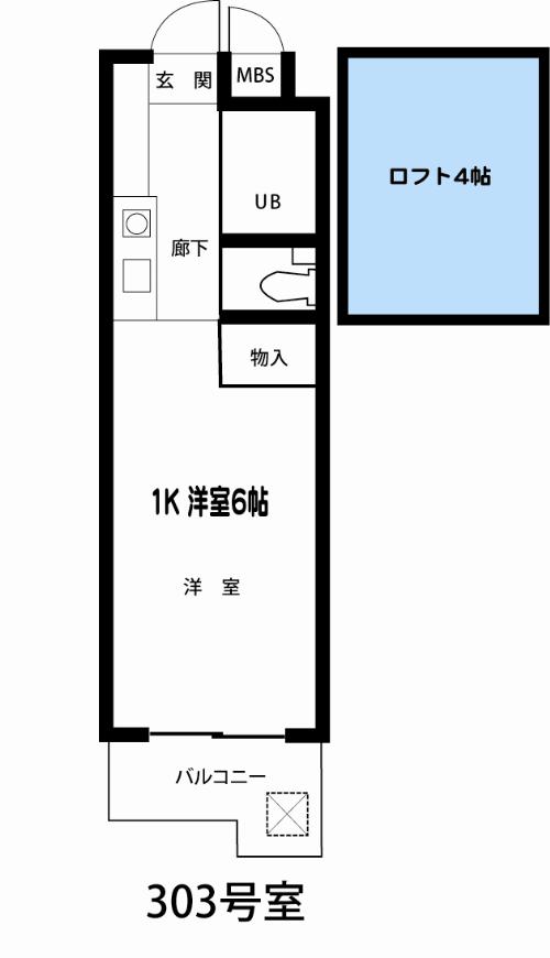 | 間取 | 1K+ロフト 洋室6帖、ロフト4帖 | 共益費 | 4,500円 |